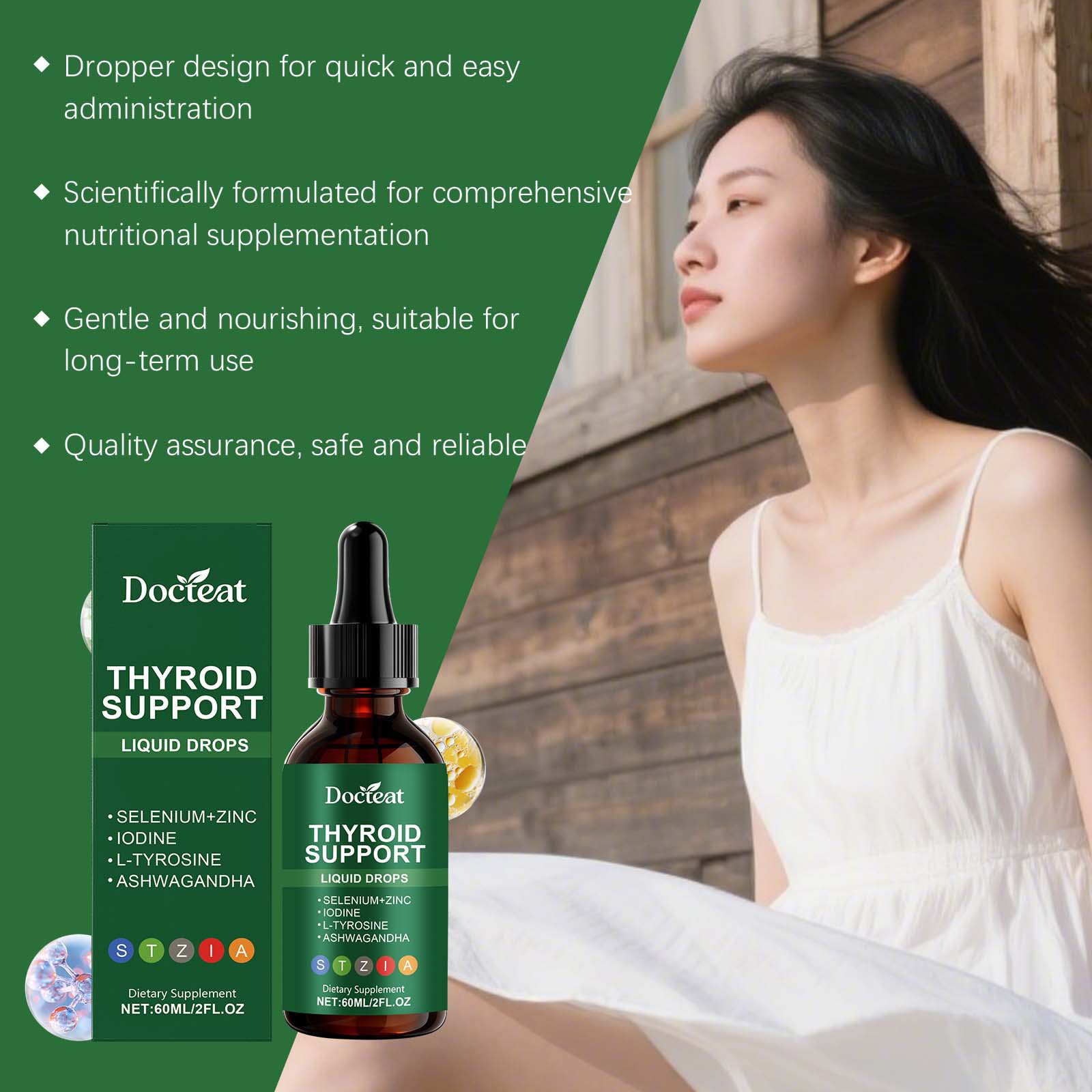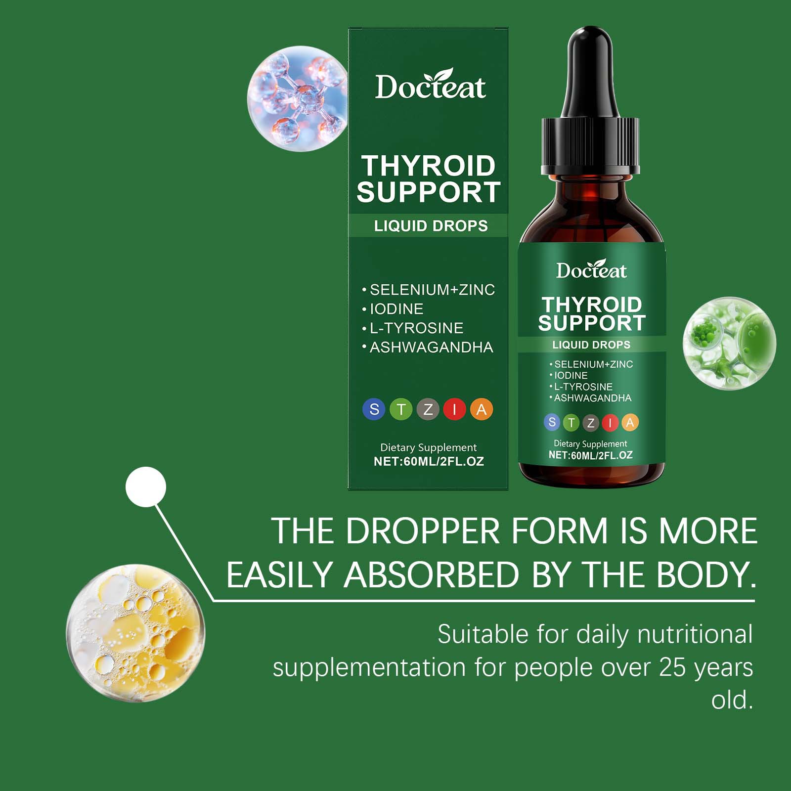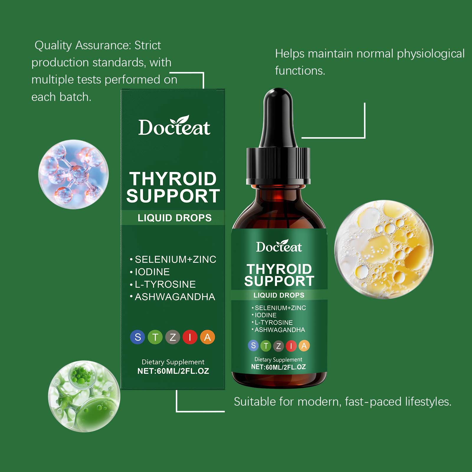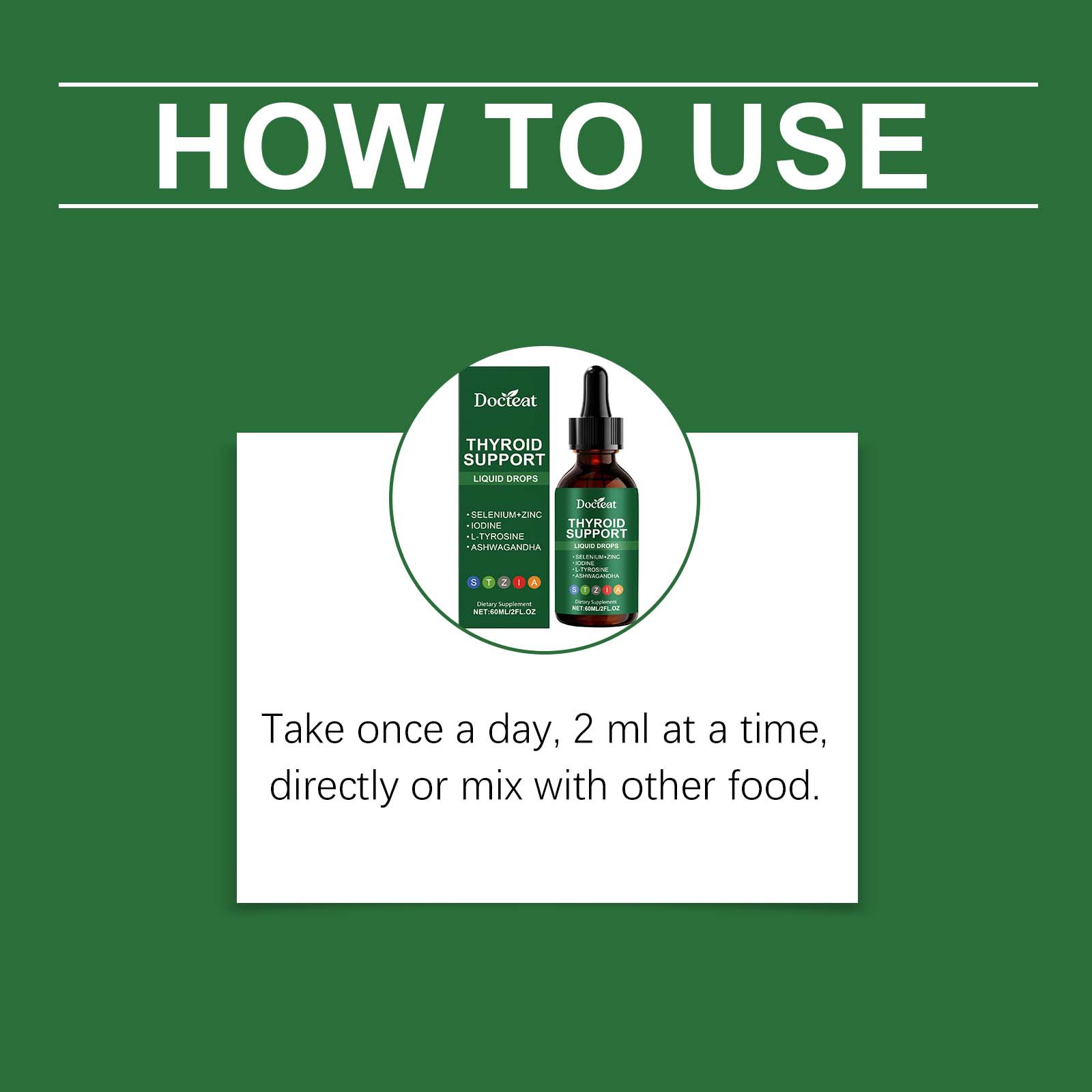 Ingredients: L- tyrosine, zinc, iodine, selenium and withania somnifera.